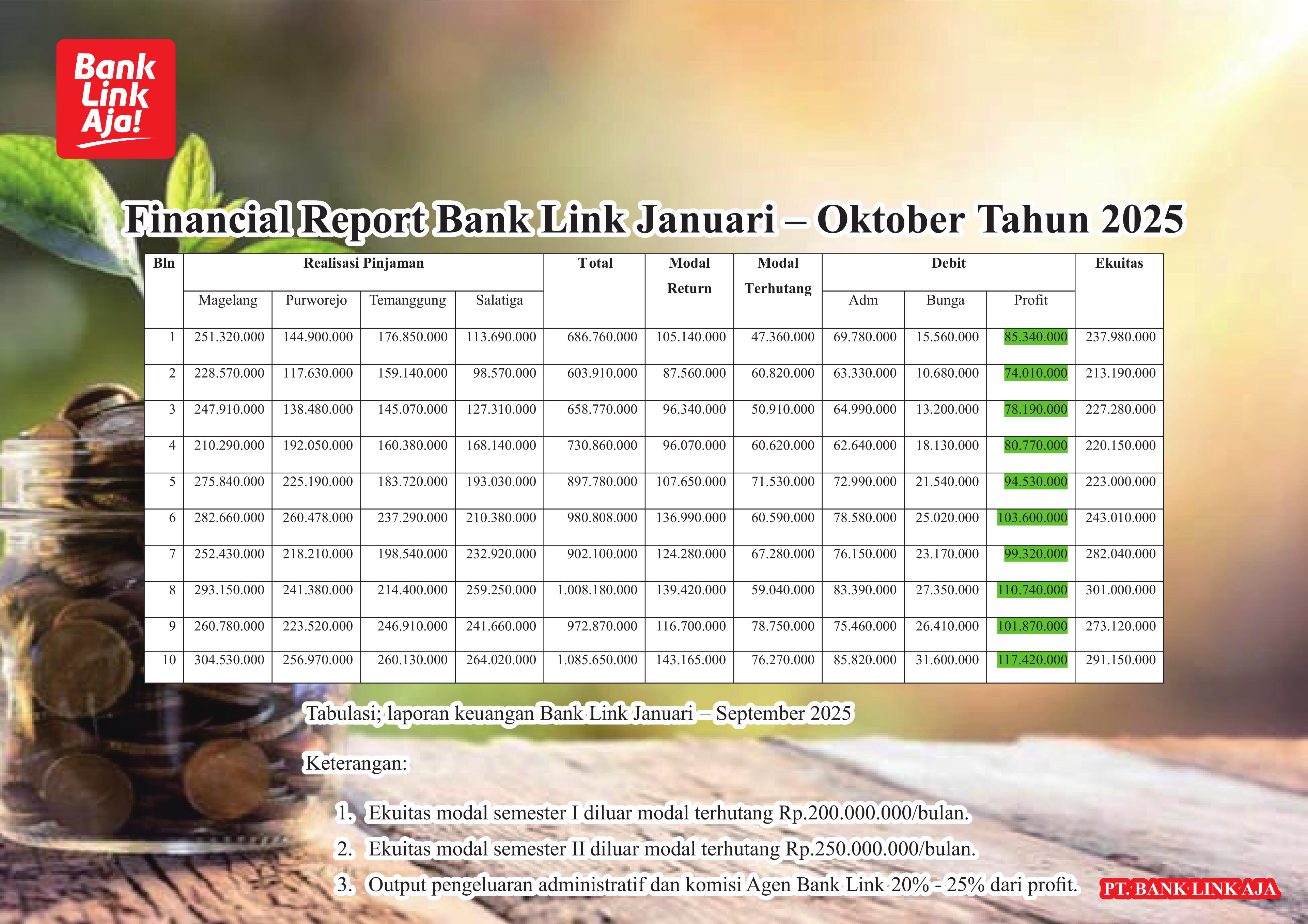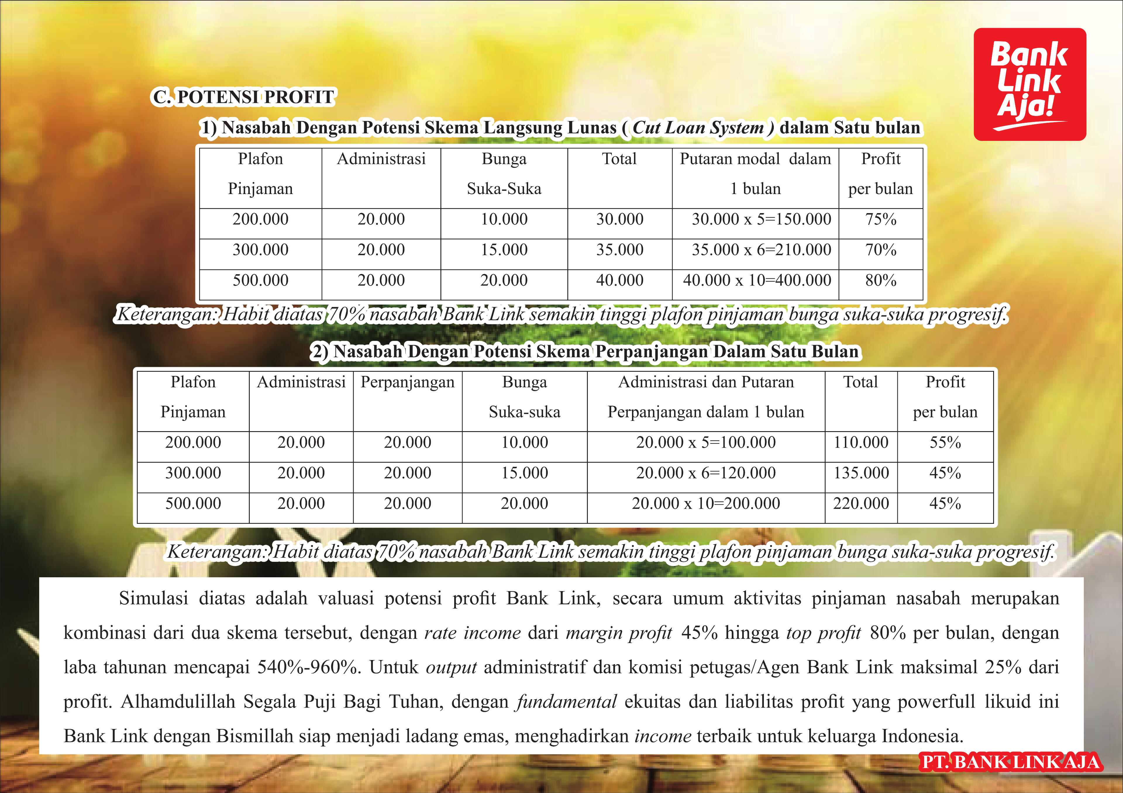 Bagi hasil nasabah itu hanya 10% dari profit Bank Link